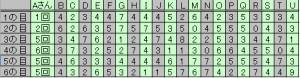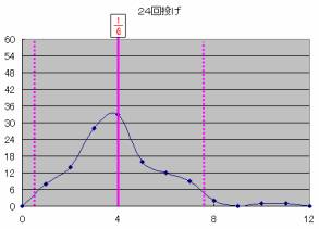 そこで、Aさん、Bさん、Cさん、・・・Uさんの20人にお願いして、24回投げをやってもらいました。結果は次の表の通り。