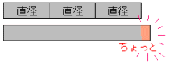 | 3.1倍と「ちょっと」になることは分かりますが、またまた「ちょっと」がついてしまいます。 さらに、詳しく調べたい。 けれど、「メジャーで測る」という方法では誤差があるので、これ以上は無理。 何か測らなくてもできるうまい方法はないものでしょうか? |